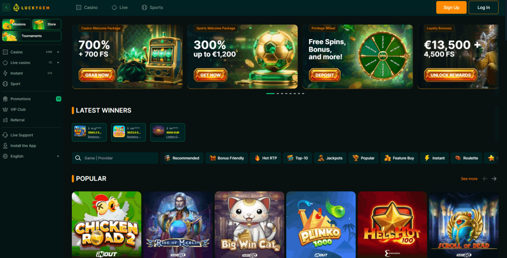 Luckygem je etablované kasino s tradicí a dobrým jménem v komunitě hráčů. Při průzkumu jsem zjistil, že kasino se zaměřuje na kvalitu her a příjemnou uživatelskou zkušenost. Rozhraní je čisté a moderní, s inteligentním vyhledáváním a doporučením her. Kasino nabízí nejen automaty se různou volatilitou a RTP, ale také live hry s živými dealery, poker, blackjack, ruletu a další. Registrace zde je bez dokladů, ale později mohou být při vyšších výběrech požadovány dodatečné informace. Mobilní aplikace je intuitivní a bezproblémová. Kasino nabízí také turnaje a speciální akce s atraktivními bonusy.