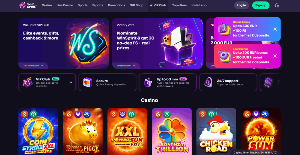 Winspirit se prezentuje jako kasino s jedním z nejrozsáhlejších katalogů her na internetovém herním trhu. Při analýze nabídky jsem si všiml, že provozovatel investuje do pečlivé lokalizace a podpory pro české hráče. Rozhraní je intuitivní, s dobrým tříděním her podle kategorie, poskytovatele a populárnosti. Kasino nabízí nejen automaty se standardním RTP, ale také progresivní hry s obrovskými jackpoty. Registrace bez dokladů je zde realitou – stačí email a heslo. Mobilní verze je velmi pečlivě navržena s hladkou navigací. Winspirit také nabízí live dealer hry, poker a betting na sportovní akce. Pravidelné akce s bonusy a free spiny přitahují jak nové, tak stálé hráče.